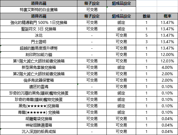 2.《特裏艾斯特的白金寶箱》組成品更新