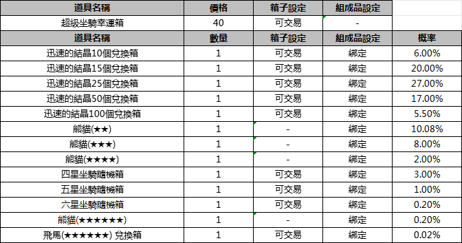 [公告] 【遊戲商城】:超級坐騎幸運箱