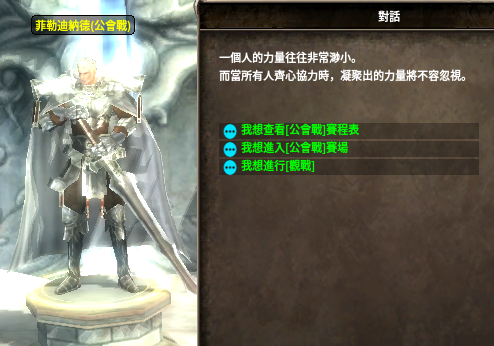 1. 比賽期間可通過NPC菲勒迪納德(古羅馬大廳)進行觀戰。