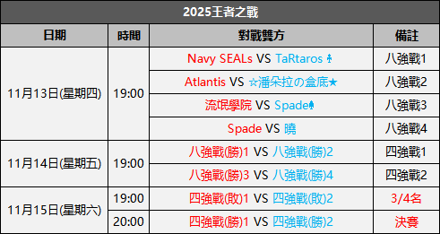 [公告] 【公會活動】2025王者之戰!對戰表公佈!