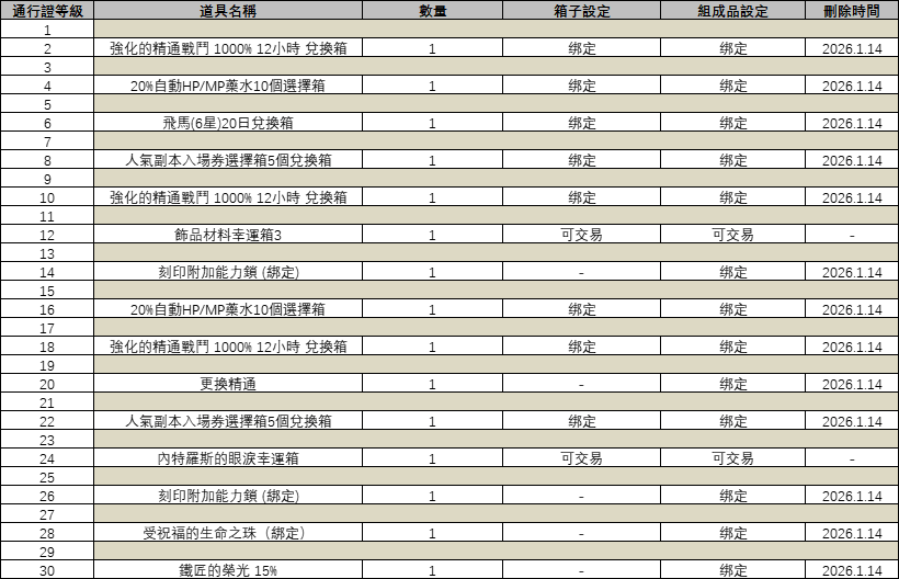 - [普通通行證獎勵]只要達到指定等級,即可解鎖並免費領取。