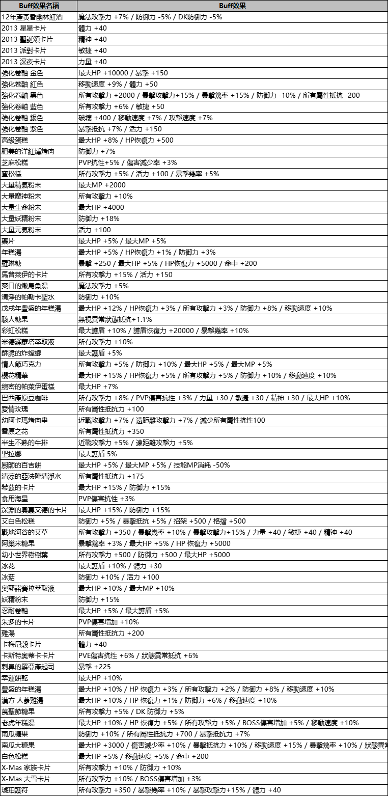 【Buff種類及效果】