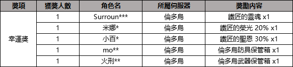 恭喜以上獲獎玩家!後續我們會準備更多更有趣的活動供大家參與。