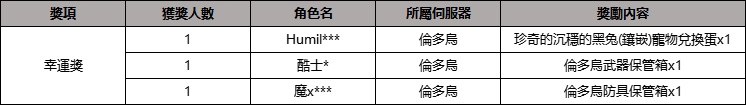 恭喜以上獲獎玩家!後續我們會準備更多更有趣的活動供大家參與。