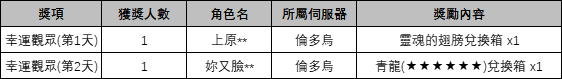 - [公告] 《幸運觀眾抽取活動》獎勵發放公告
