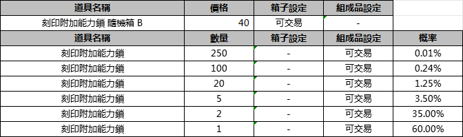 [公告] 【遊戲商城】:刻印附加能力鎖 優惠包 B