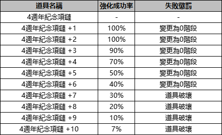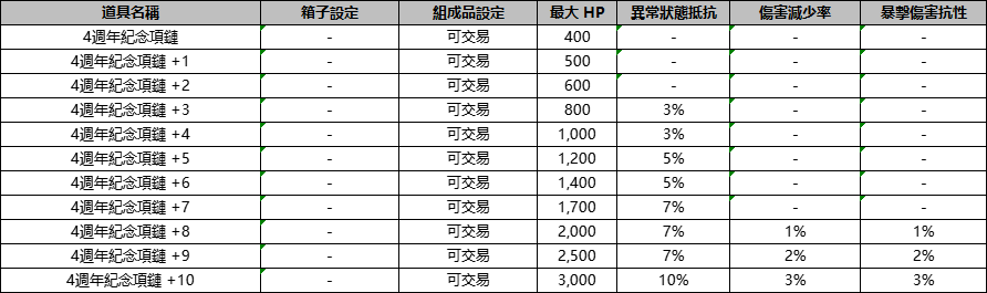 2.【4週年紀念項鏈】的屬性以及強化詳情