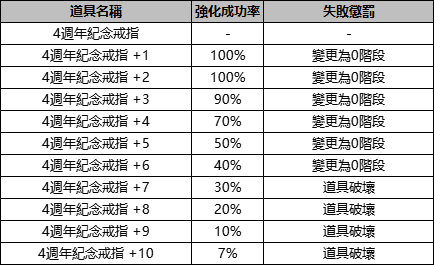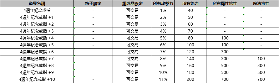 3.【4週年紀念戒指】的屬性以及強化詳情