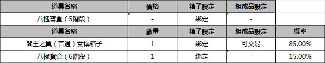 [公告] 【遊戲商城】:八極寶盒(1階段)