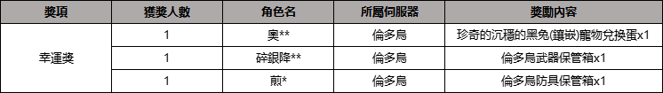 恭喜以上獲獎玩家!後續我們會準備更多更有趣的活動供大家參與。