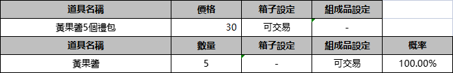 [公告] 【遊戲商城】:黃果醬禮包