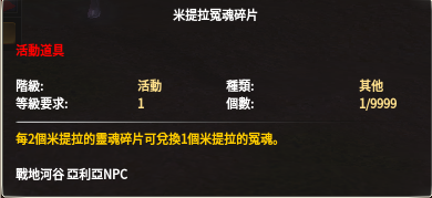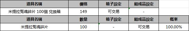 【遊戲商城】:米提拉冤魂碎片100個兌換箱