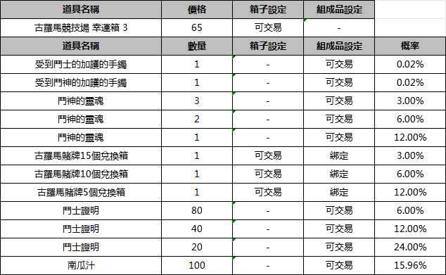 [公告] 【遊戲商城】:古羅馬競技場 幸運箱3