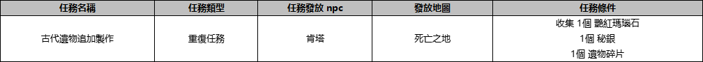 ※ 通過該任務可額外生成 [古代遺物] 物品。