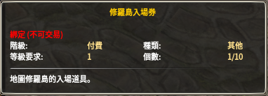 ※ 《修羅島》為被遺忘的無名島,因此僅能通過入場券入場,且沒有退路可言。