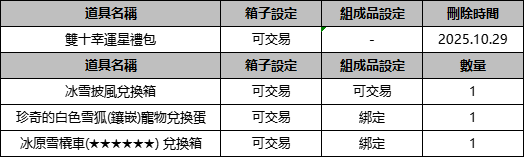 ※ 購買獲得的【雙十幸運星兌換箱】道具將發送至網頁商城背包,用戶需前往網頁商城背包手動將道具發送至遊戲內角色。