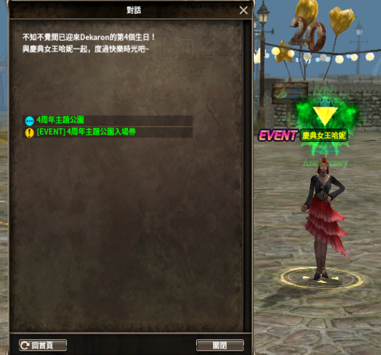 1.活動期間,可通過戰地河谷NPC:慶典女王哈妮,進入“4週年主題公園”限時活動副本。