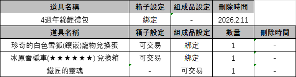 ※ 以上活動道具刪除時間為【2026年2月11日】,超過未上傳至遊戲內或未使用時將統一刪除。