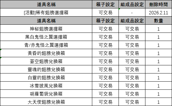 ※ 以上活動道具刪除時間為2026年2月11日,超過未上傳至遊戲內或未使用時將統一刪除。
