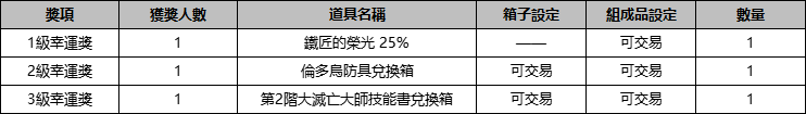 3.以2026年2月4日維護時為准,將統計全體伺服器角色背包中的《倫多烏幸運劵》持有數,並從中抽取3名幸運角色發放幸運獎勵。