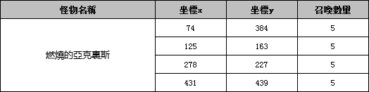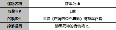 4.消滅怪物【燃燒的亞克裏斯】時將以一定幾率召喚怪物【漆黑死神】。
