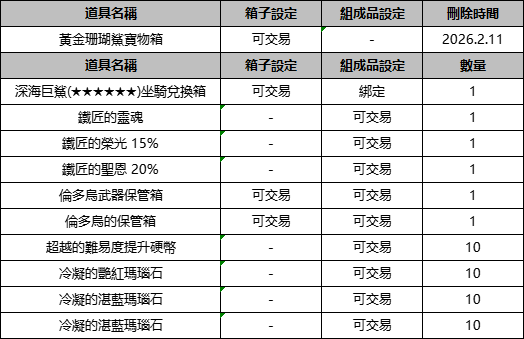 【活動日期】:2026年1月21日 維護後 ~ 2026年2月4日 維護前