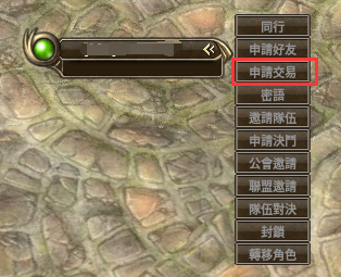 (1)選中想要進行交易的角色後,在目標欄中選擇“交易申請”。