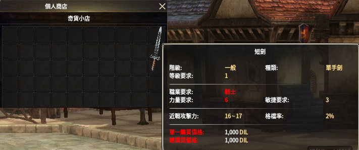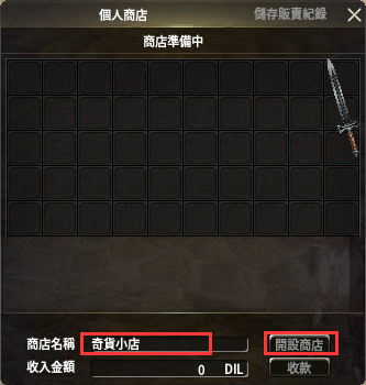 - 擺攤是將可交易型的道具出售給其他玩家從而獲得DIL的功能。(僅能在平靜河谷區域使用擺攤功能。)