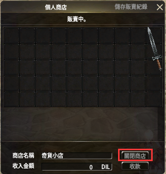 (2)通過出售道具獲得的DIL,將顯示在“收入金額”中。可通過點擊“回收”,將個人商店中的DIL轉入角色背包中。