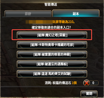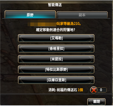 便利功能 智能傳送系統 一、什麼是智能傳送? - 通過智能傳送功能,可快速傳送至當前角色等級可傳送的地區(野外/副本)。 ※野外地區不限等級都可進行傳送(1~250級) ※副本地區需達到71級才可進行傳送。 ※最多可在5個地區中選擇並進行傳送。 二、傳送地區 ※每個傳送地區都有相應的等級範圍,不屬於這個範圍的將從“智能傳送”窗口中移除且無法進行傳送。 ※每次使用“智能傳送”功能時,需要消耗[祝福的傳送石]1個。 ※以上內容僅供參考。