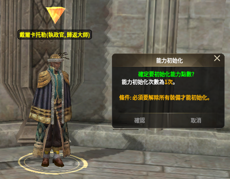 - 可通過至戰地河谷NPC“戴爾卡托勒”或“貝勒克斯”對話進行能力值初始化。