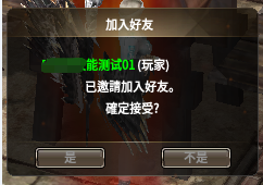 - 收到好友申請的角色點擊“是”時將完成好友的添加。(點擊“否”時將拒絕好友申請)