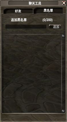 ※ 可在介面左側聊天框中右擊其他角色名稱,選擇“黑名單”即可將對方加入黑名單。