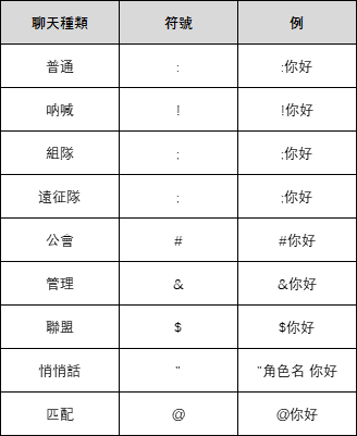 - 匹配聊天:在同一伺服器的所有地區都可進行聊天。