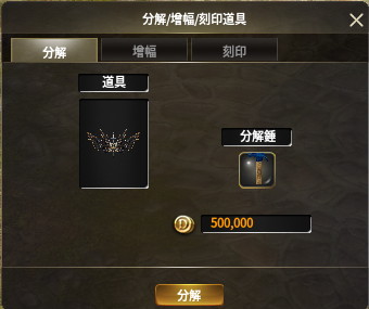 2) 分解翅膀時需要消耗“分解錘”與DIL。