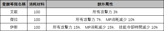 4) 覺醒1~2階段[艾歐][傑拉]的覺醒成功率為100%,但3階段[伊斯]為低概率覺醒成功。