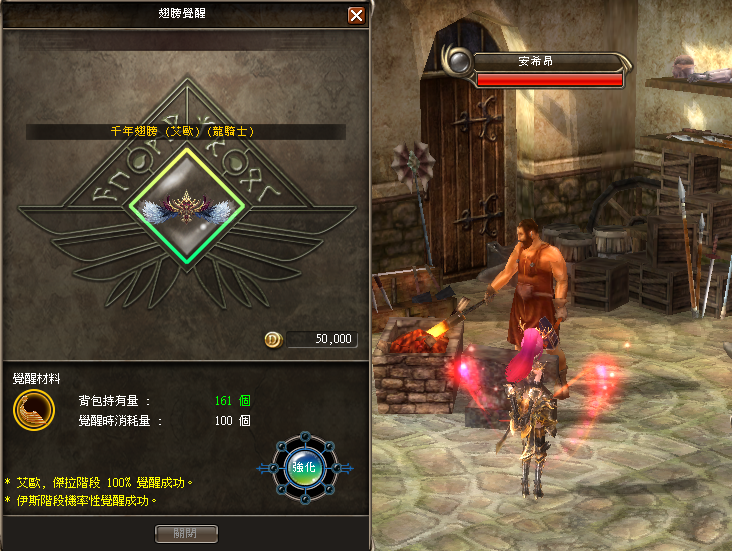 1) 可通過戰地河谷鐵匠NPC進行翅膀的覺醒。