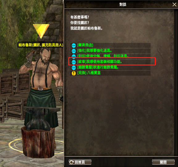 - 通過與鐵匠的對話,打開紋章添加系統。並選擇“紋章提取”介面。