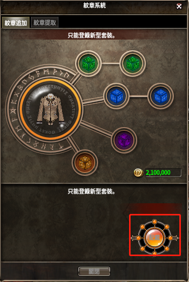 - 為進行紋章添加操作,需擁有紋章鑲嵌孔的套裝道具、紋章道具、DIL。