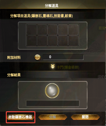 - 鑲嵌移除過程中,提升成功率的材料鑲嵌石與瑪瑙道具最多可添加5個。